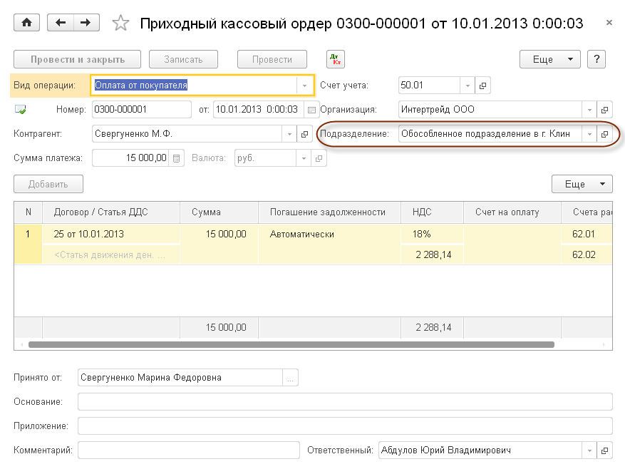 Для нейтрализации документальной путаницы предусмотрено внесение контактных данных подразделений и ответственных лиц в обособленных подразделениях. Таким образом, на документах подразделений будут отражены внесенные данные, а также применена раздельная нумерация.