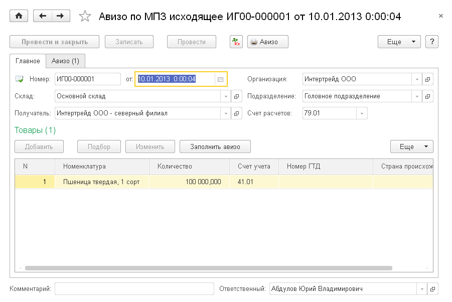 Между подразделениями, выделенными на отдельный баланс, реализован специфический бухгалтерский документооборот - используются специальные документы типа "Авизо":